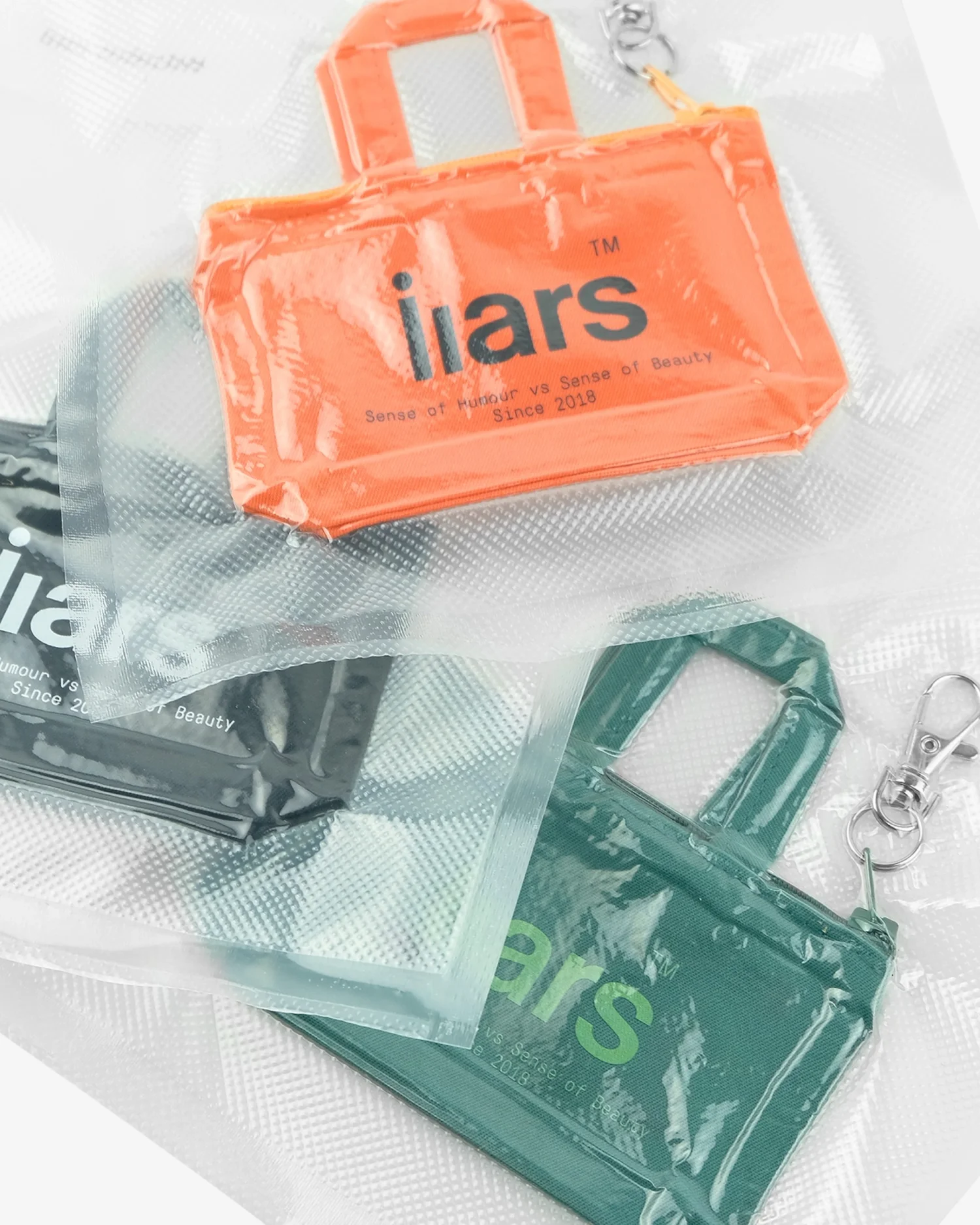 Компактный аксессуар, представляющий собой точную уменьшенную копию знакового шоппера Liars Collective. Этот предмет объединяет в себе ироничный подход к дизайну и повседневную практичность.