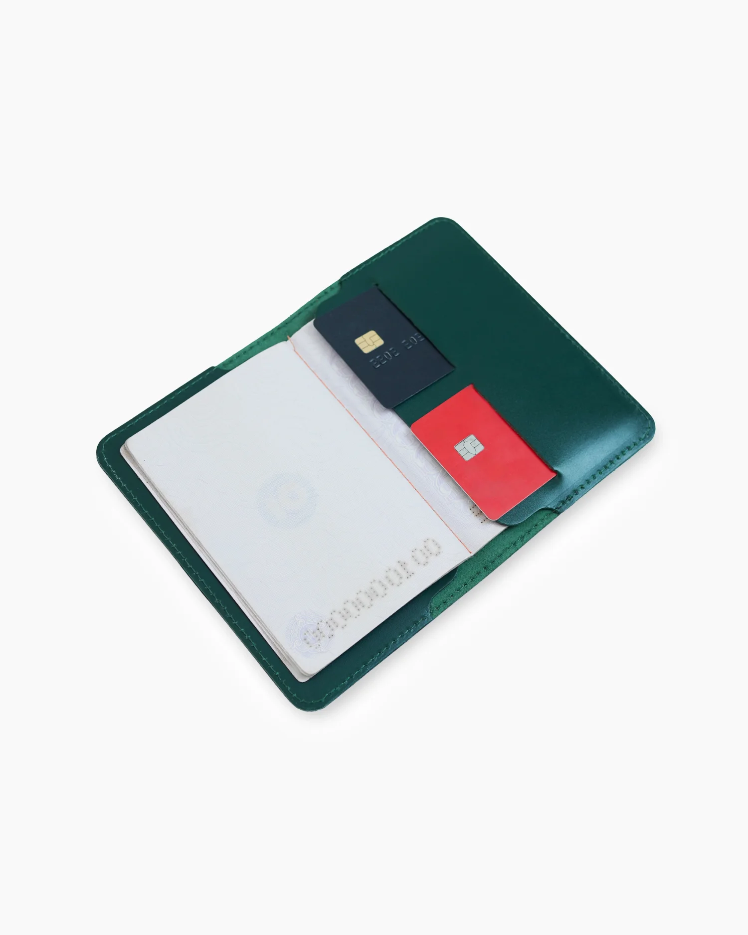 Премиальный аксессуар для путешествий, выполненный из гладкой натуральной кожи в глубоком изумрудном оттенке. Модель объединяет тактильную роскошь классического материала с современной визуальной эстетикой «дизайн-департамента».