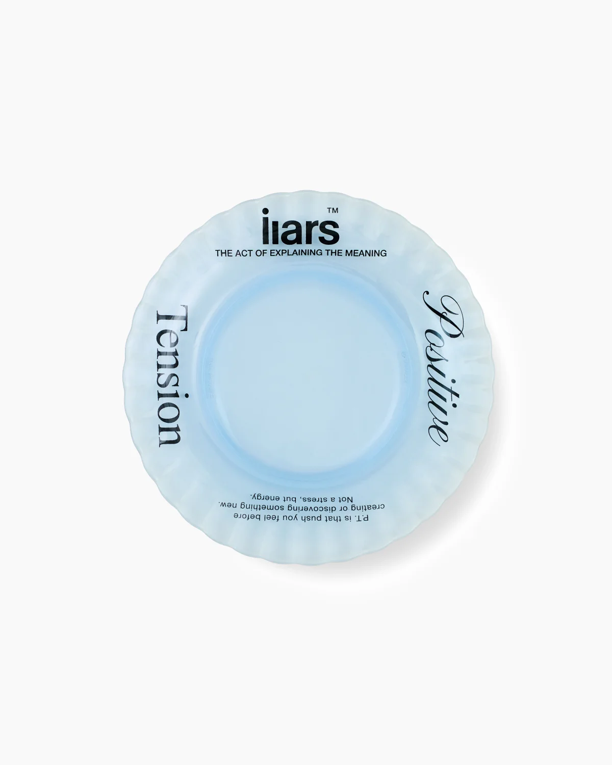 Концептуальный предмет сервировки и интерьерный арт-объект, выполненный из закаленного стекла нежно-голубого оттенка. Тарелка является частью серии «Positive Tension», воплощающей идею созидательной энергии и поиска баланса.