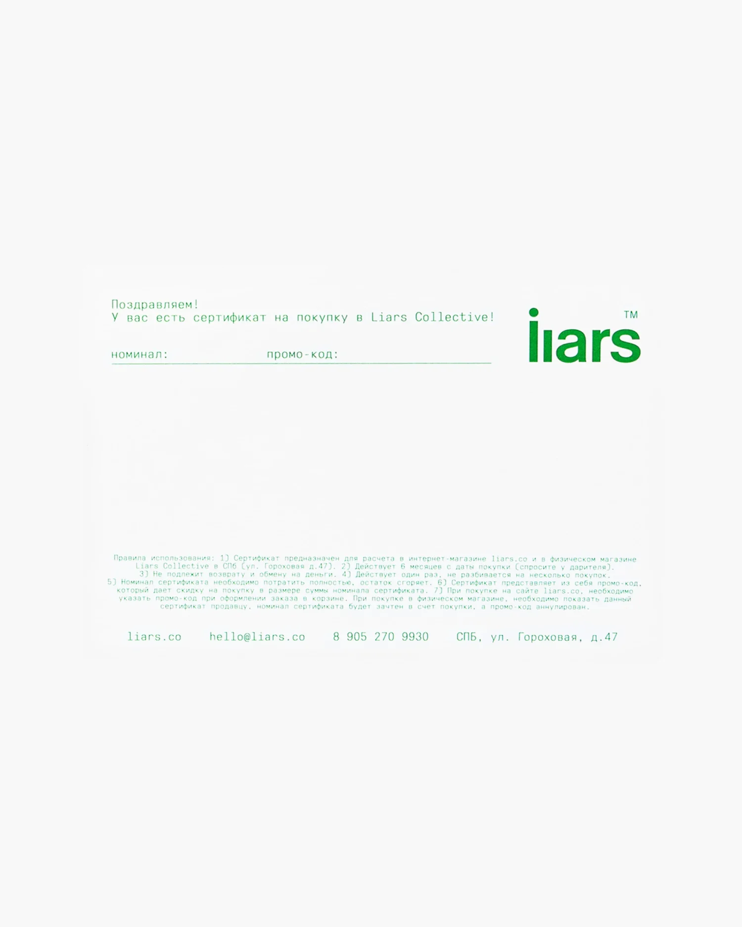 Правила использования: — Необходимо предъявить сертификат или промо-код сертификата в момент покупки. — После покупки промо-код сертификата аннулируется. — Сертификат применим на одну покупку, его нельзя разбить на части. — Действителен в течение 6 месяцев с момента покупки. — Если стоимость покупки по сертификату меньше номинала, остаток по сертификату не возвращается.