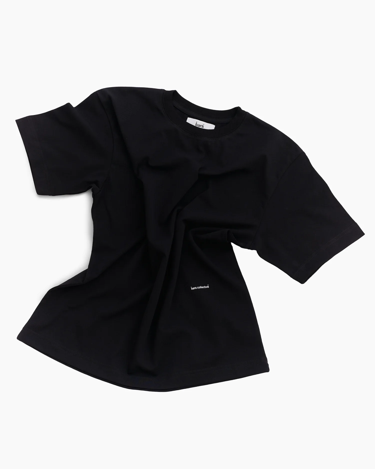 Базовая черная футболка свободного кроя, разработанная как фундаментальный элемент повседневного гардероба. Изделие выполнено из плотного премиального хлопка, который превосходно держит форму и обеспечивает исключительный комфорт при ежедневной носке. Минималистичный дизайн акцентирован деликатным микро-логотипом «liars collective» в нижней части передней панели