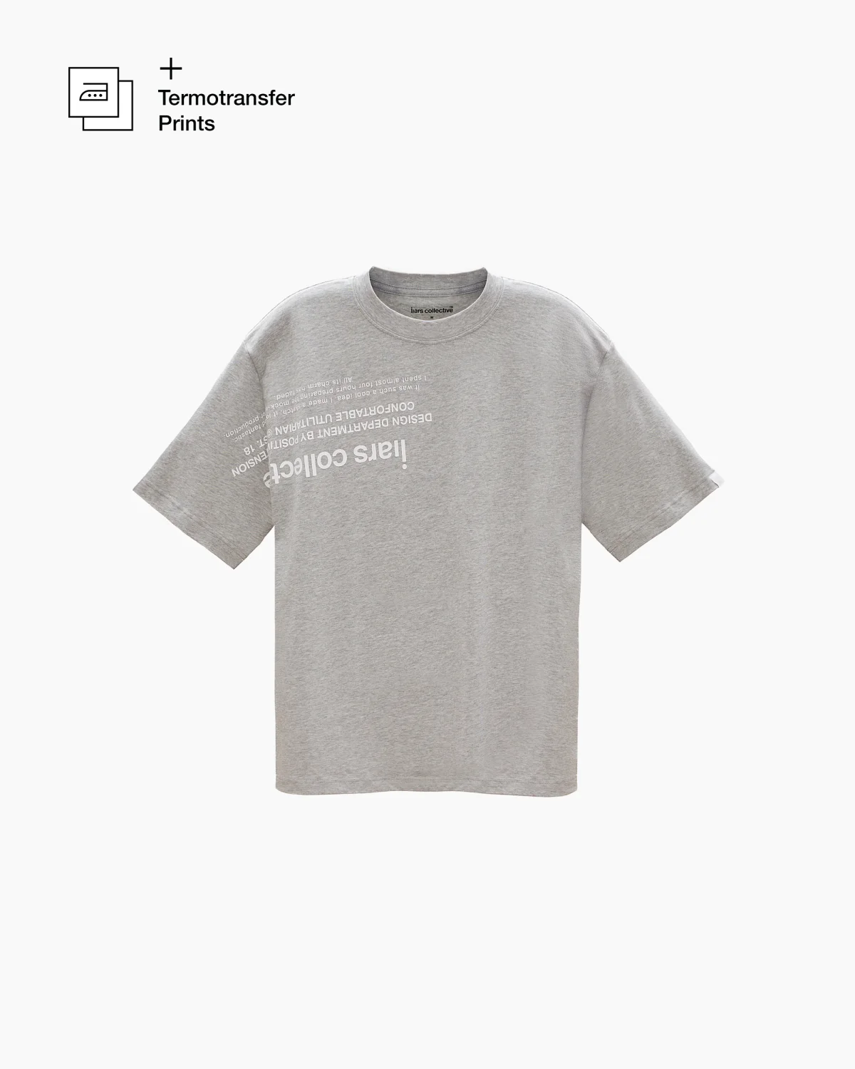Футболка из плотного хлопка свободного кроя с большим принтом на груди, котрый переходит на рукав. Мини-лого «Liars Collective» на задней части под воротом и небольшая бирка с брендингом на левом рукаве. + TERMOTRANSFER PRINTS В комплекте с этой вещью идет набор термопереводных принтов для кастомизации изделия. Используйте инструкцию чтобы перенести изображение на ткань.